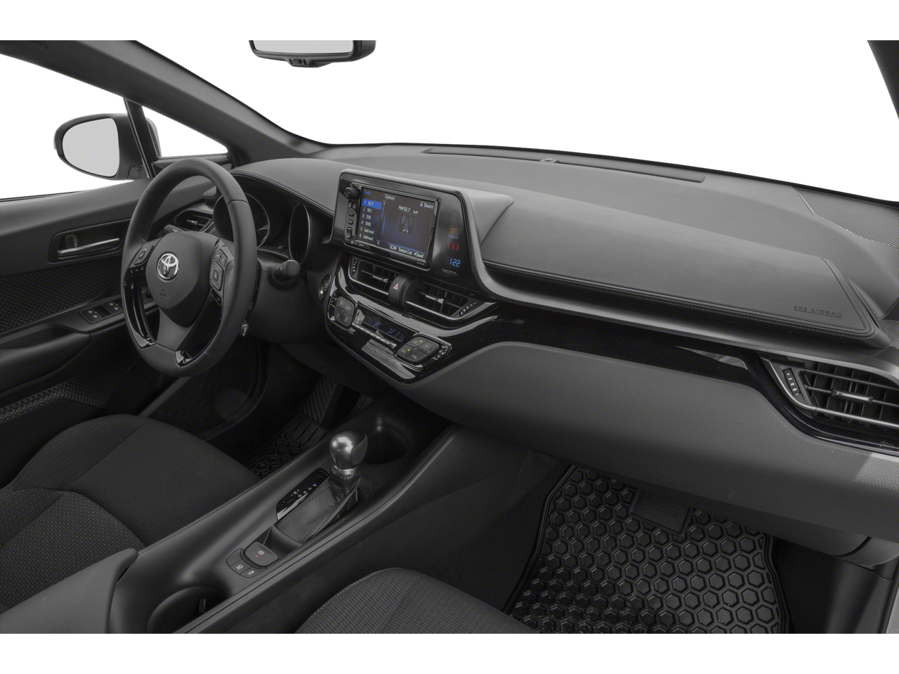 The C-HR also boasts a host of advanced safety and technology features, such as 6 Speakers, Radio data system, Air Conditioning, Automatic temperature control, Front dual zone A/C, Rear window defroster, Power steering, Power windows, Remote keyless entry, Steering wheel mounted audio controls, Four wheel independent suspension, Speed-sensing steering, Traction control, 4-Wheel Disc Brakes, ABS brakes, Dual front impact airbags, Dual front side impact airbags, Front anti-roll bar, Knee airbag, Low tire pressure warning, Occupant sensing airbag, Overhead airbag, Rear anti-roll bar, Rear side impact airbag, Brake assist, Electronic Stability Control, Exterior Parking Camera Rear, Auto High-beam Headlights, Delay-off headlights, and Fully automatic headlights.