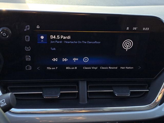 2-Way Adjustable Front Head Restraints, 3.50 Final Drive Axle Ratio, 4-Way Manual Front Passenger Seat Adjuster, 4-Wheel Disc Brakes, 6 Speakers, 6-Speaker Audio System Feature, 6-Way Manual Driver Seat Adjuster, ABS brakes, Adaptive Cruise Control, Air Conditioning, Alloy wheels, AM/FM radio: SiriusXM, Auto High-beam Headlights, Automatic temperature control, Brake assist, Bumpers: body-color, Cloth/Evotex Seat Trim, Compass, Delay-off headlights, Driver Confidence Package, Driver door bin, Driver vanity mirror, Dual front impact airbags, Dual front side impact airbags, Electronic Stability Control, Emergency communication system: OnStar One Essentials, Exterior Parking Camera Rear, Front anti-roll bar, Front Bucket Seats, Front Center Armrest, Front Doors Keyless Open, Front reading lights, Front wheel independent suspension, Fully automatic headlights, Heated Driver and Front Passenger Seats, Heated Power-Adjustable Outside Mirrors, Heated Steering Wheel, Illuminated entry, Lane Change Alert with Side Blind Zone Alert, Low tire pressure warning, LT Convenience Package, Occupant sensing airbag, Outside temperature display, Overhead airbag, Overhead console, Panic alarm, Passenger door bin, Passenger vanity mirror, Power door mirrors, Power steering, Power windows, Preferred Equipment Group 1LT, Premium audio system: Chevrolet Infotainment 3, Radio data system, Radio: AM/FM Stereo Audio System, Rear Cross-Traffic Alert, Rear Park Assist, Rear window defroster, Rear window wiper, Remote keyless entry, Security system, SiriusXM Trial Subscription, Speed control, Split folding rear seat, Spoiler, Steering wheel mounted audio controls, Tachometer, Telescoping steering wheel, Tilt steering wheel, Traction control, Trip computer, Variably intermittent wipers, Wheels: 17 Inch Gray-Painted Machined Aluminum Alloy, Wrapped Steering Wheel.